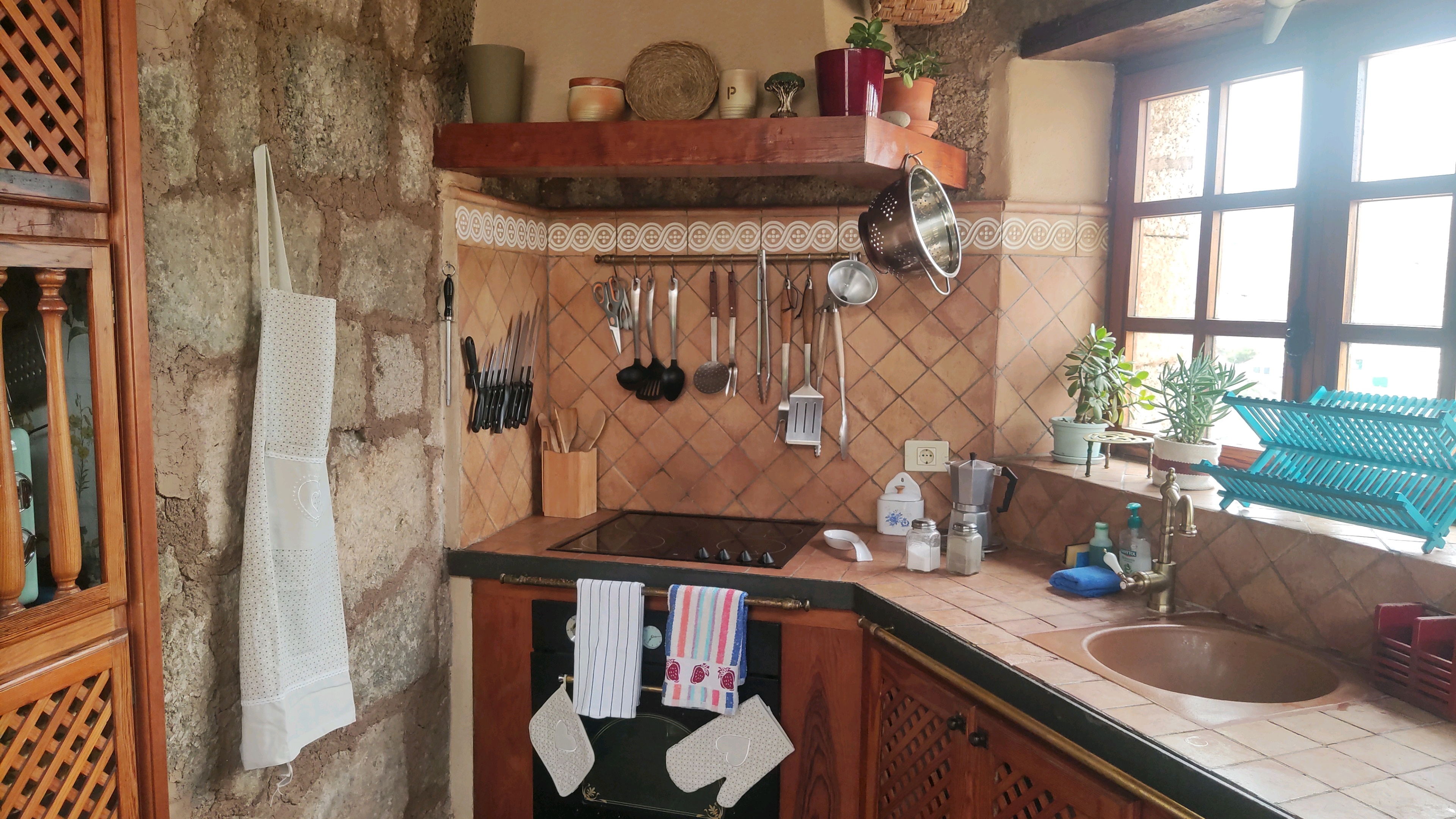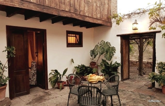Villa Isabel is a marvelous typical Canarian rural house. Dating from the 18th century, it's entirely built of stone and wood. Situated in the historic center of one of the most peaceful and beautiful mid-altitude villages, Arico. It's highly unlikely that any noise will interrupt your rest. It was restored by its current owner, a descendant of the original owner. It offers all modern conveniences without losing that old-world charm. It has two spacious bedrooms, two patios, and three bathrooms. It features a garden terrace with fruit trees and wonderful views of the ravine. A small grocery store is located on the adjacent street, where you can buy anything you need, and at the end of the street where Villa Isabel is located, there's a lovely little church with its tree-lined square and an excellent tapas bar, "La Pimienta," run by a charming German couple where you can enjoy a beer and some delicious home-cooked food. Several hiking trails are available in the area, and if you want to swim in the sea, you only need to take a car or bus to the village of Porís, which is a 10-minute drive away. In short... the best place to disconnect and enjoy the silence...