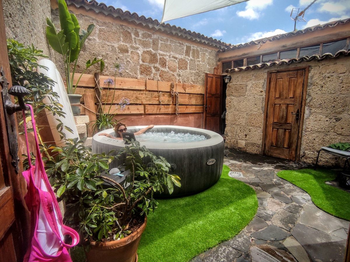 Villa Isabel, a marvelous (18th-century) Canarian country house. Located in the historic artistic center of one of the quietest and most beautiful mid-altitude villages, Arico. It boasts all modern comforts without losing its old-world charm. 2 bedrooms, 2 patios (1 with a spa), 2 bathrooms, 1 toilet. Garden with fruit trees.