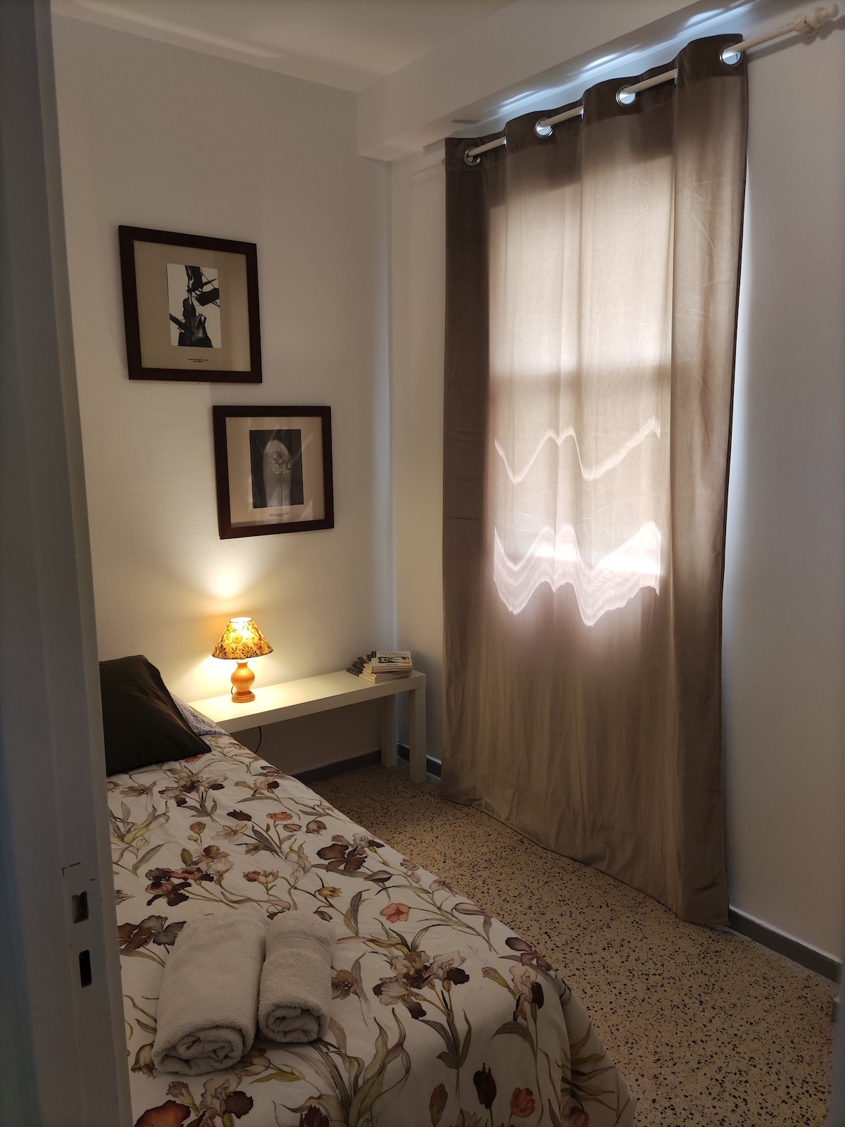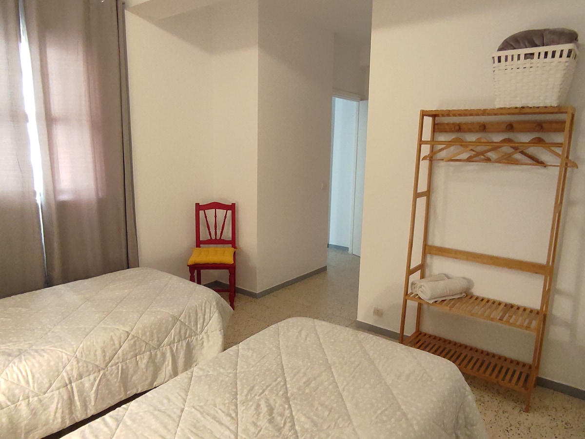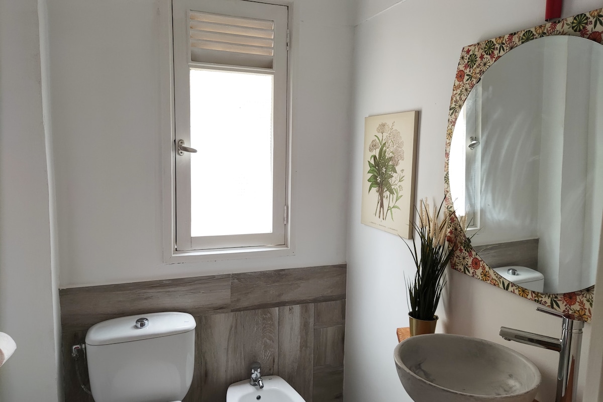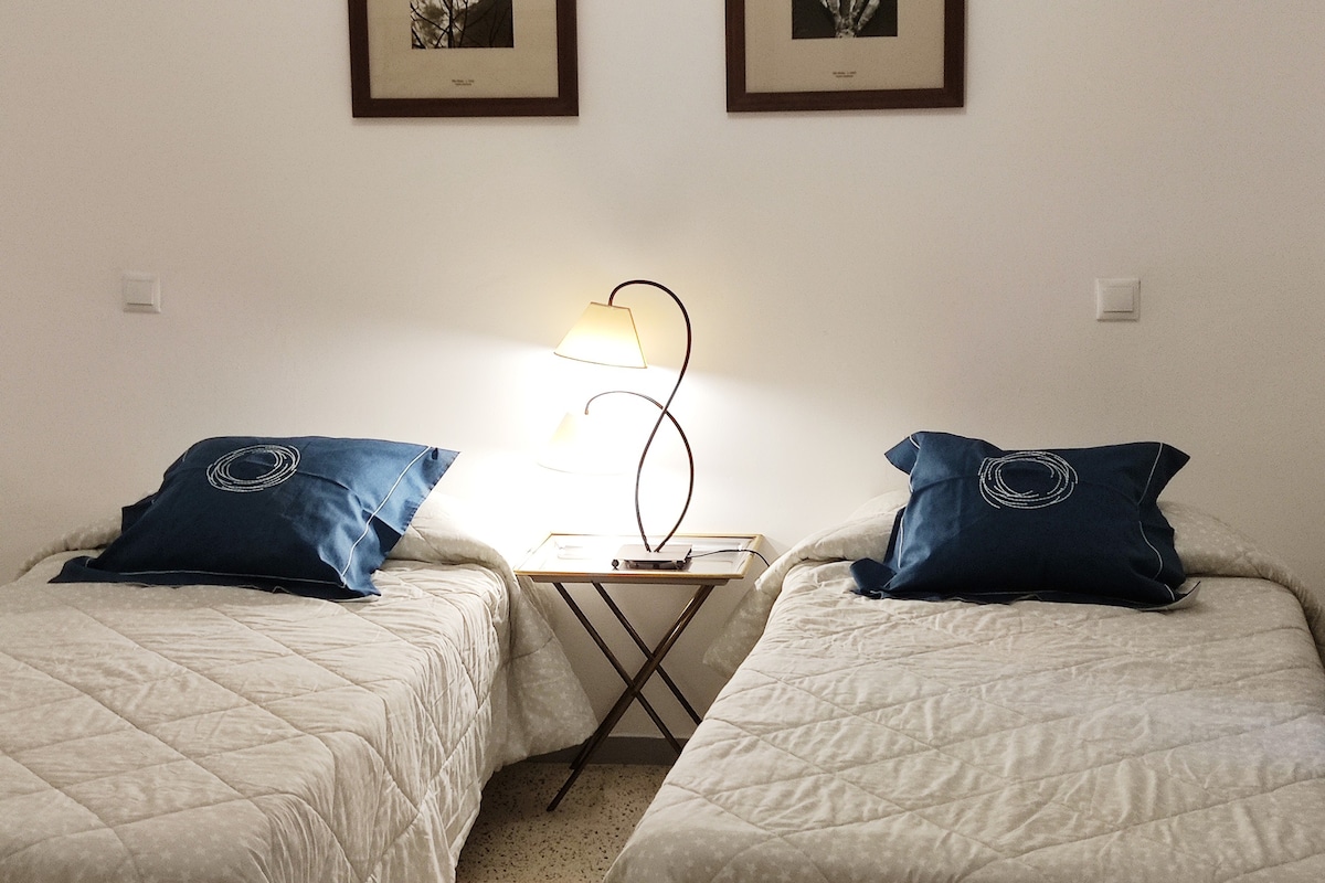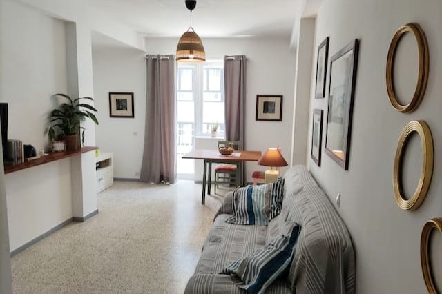 El salón da a la calle principal, justo por encima de la copa de los árboles, dándote la oportunidad de ver el constante movimiento de sus habitantes. Durante la noche todo permanece cerrado y en silencio. Los dos dormitorios dan a un patio interior, viejo pero tranquilo y luminoso. Es ideal para tres personas. Está totalmente equipado y nuestra intención es que te sientas como en la casa de un buen amigo.