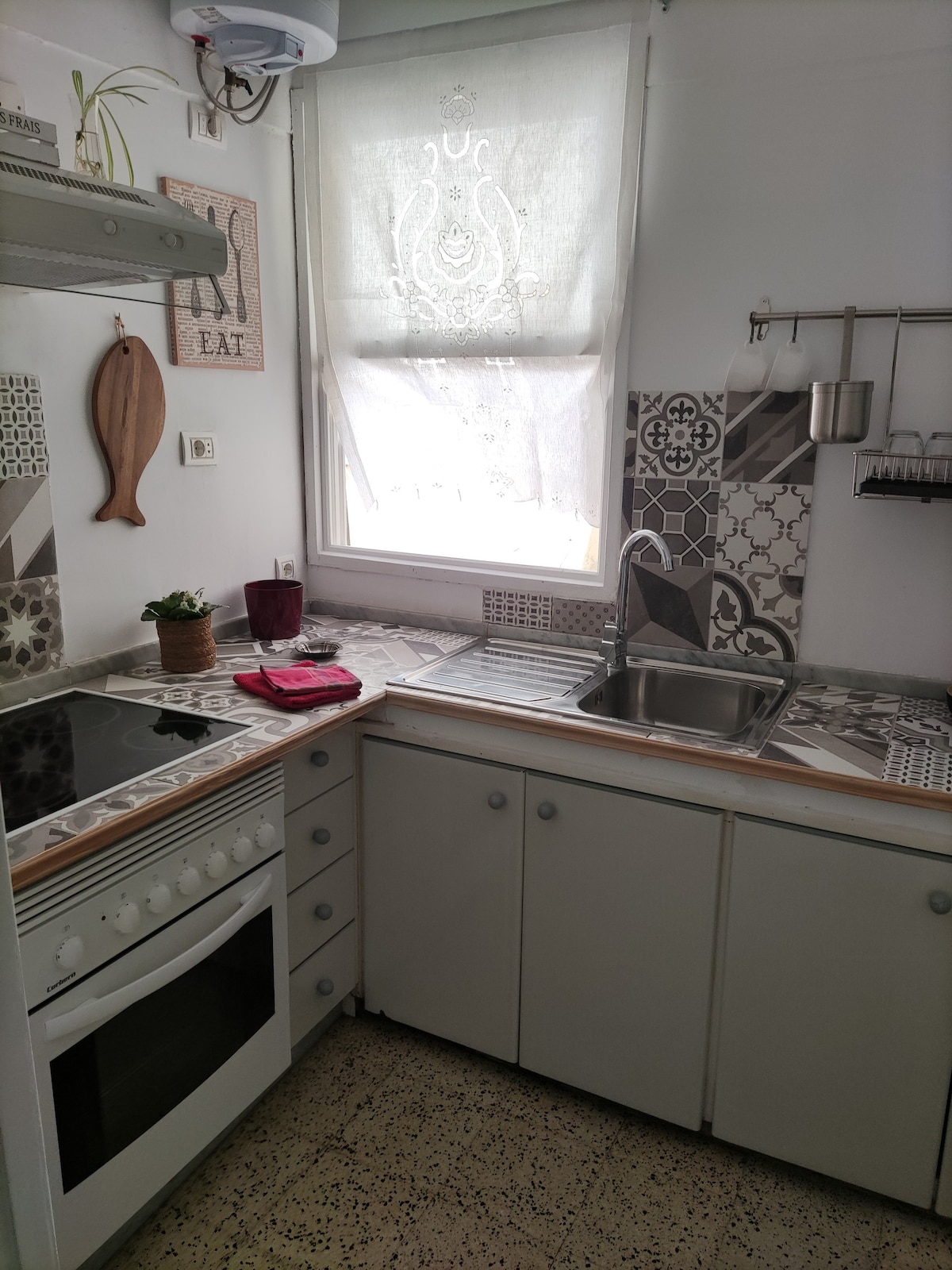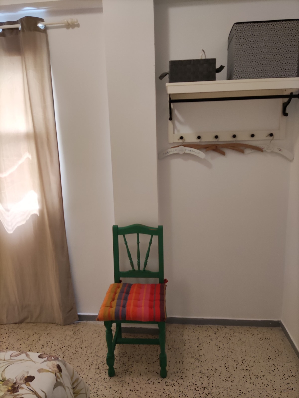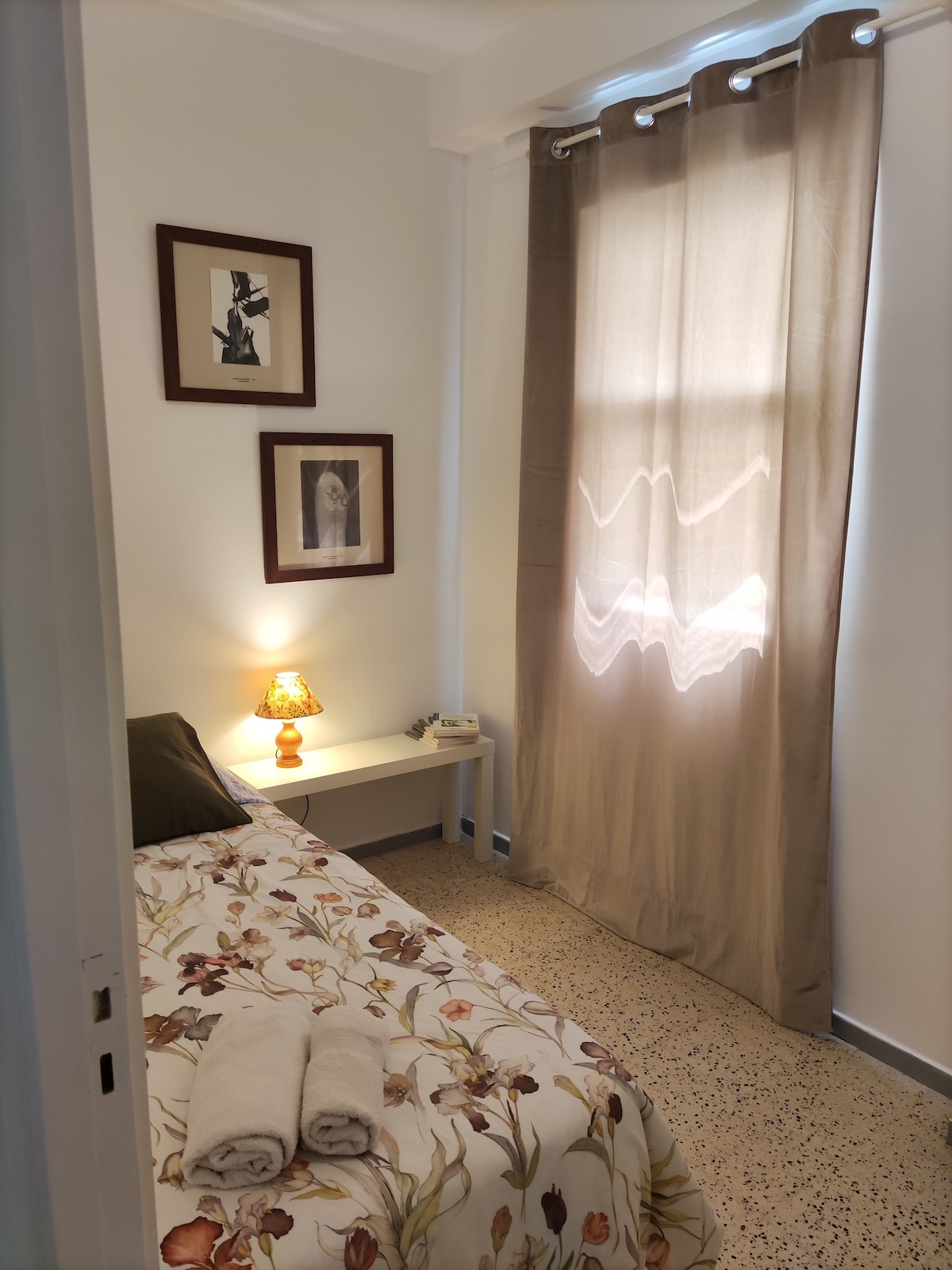 El salón da a la calle principal, justo por encima de la copa de los árboles, dándote la oportunidad de ver el constante movimiento de sus habitantes. Durante la noche todo permanece cerrado y en silencio. Los dos dormitorios dan a un patio interior, viejo pero tranquilo y luminoso. Es ideal para tres personas. Está totalmente equipado y nuestra intención es que te sientas como en la casa de un buen amigo.