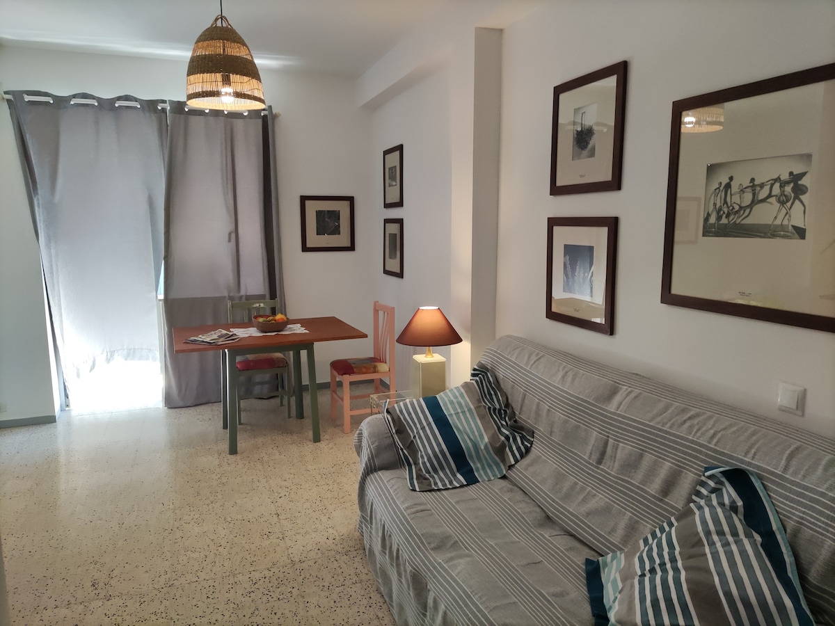 Confortable apartamento de dos dormitorios totalmente equipado, en la tercera planta de un conocido edificio ubicado en una calle peatonal y muy popular en la ciudad, donde podrás sentir el latido y ritmo de la ciudad y sus habitantes, personas amables que te harán sentir como uno más.