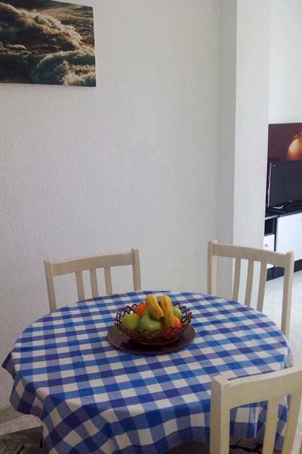 El apartamento es independiente y tienes a disposición todas las estancias, baño, cocina, etc...sólo compartimos la escalera de acceso y el ascensor.